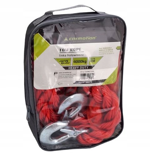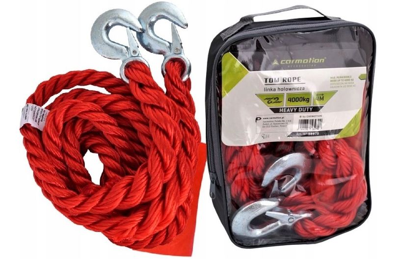 • Vrv je opremljena z zaponkama na obeh straneh – izdelane so iz visokokakovostnega jekla, kar bistveno olajša namestitev vrvi tako na vlečno kot na vlečeno vozilo.
