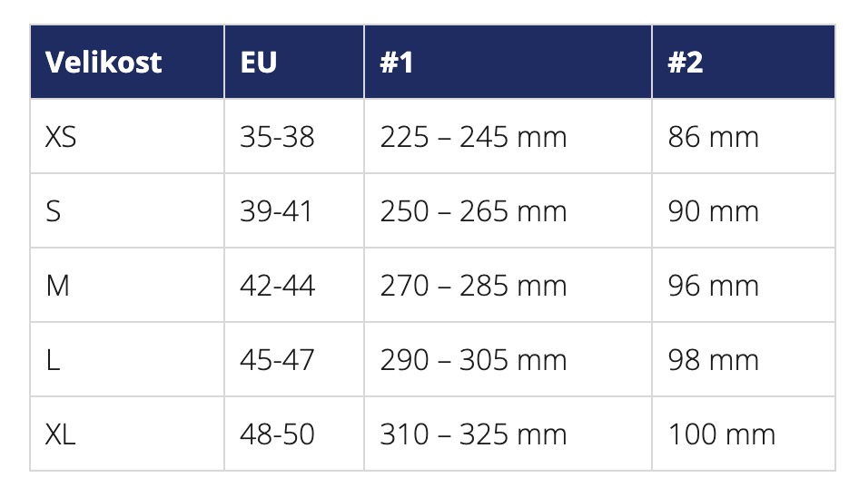 S pomočjo spodnje tabele si pomagajte pri izbiri velikosti, ki bo ustrezala vaši obutvi.