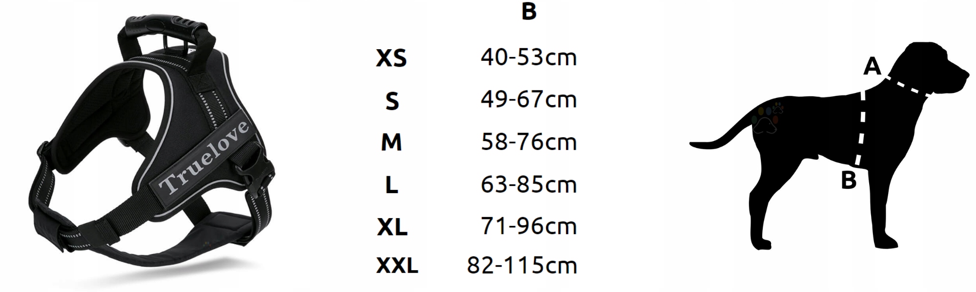 ČRNA Strong TRUELOVE XS zaščitna pasja oprsnica Celoten opis
