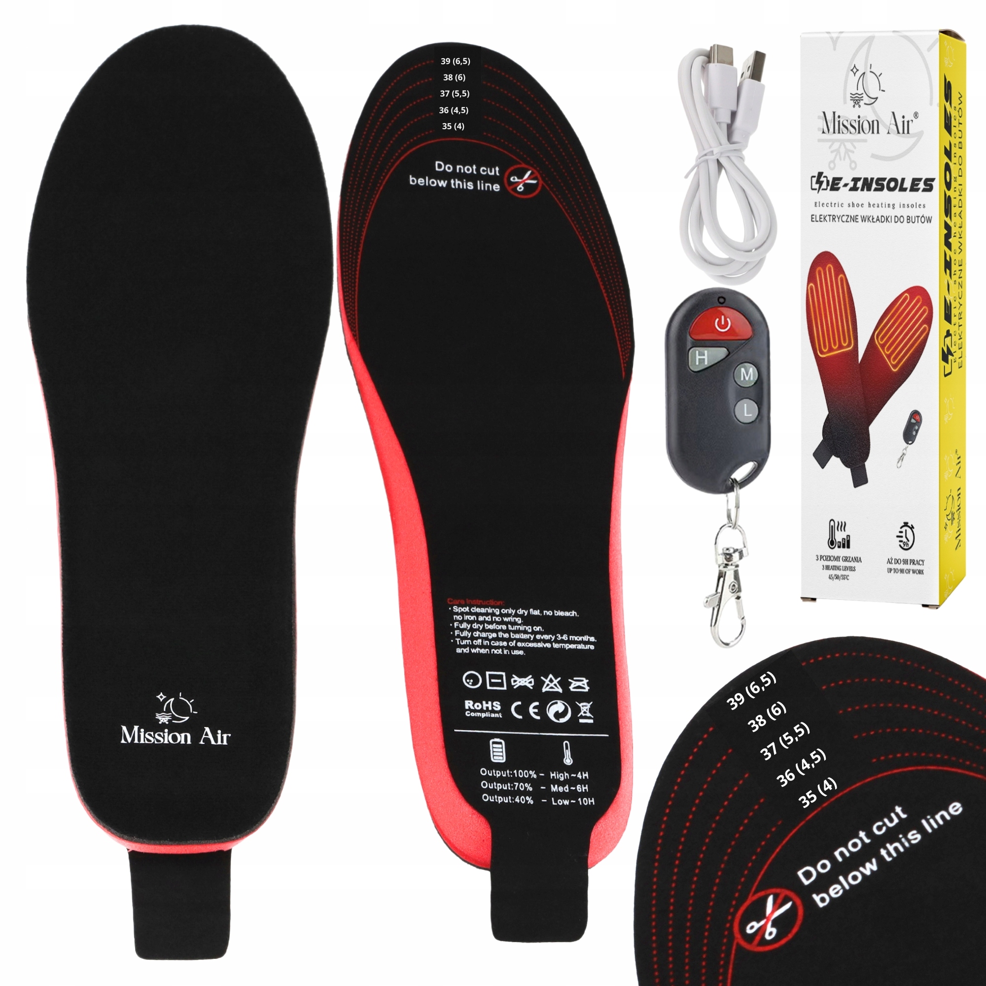 V vsakem vložku, v predelu pete, je baterija, ki napaja grelne elemente. Samo aktivirajte gumb na peti, nato z daljinskim upravljalnikom vklopite funkcijo ogrevanja in … končano je! V svojih novih ogrevanih vložkih za čevlje Mission Air lahko uživate v prijetni in udobni toplini!