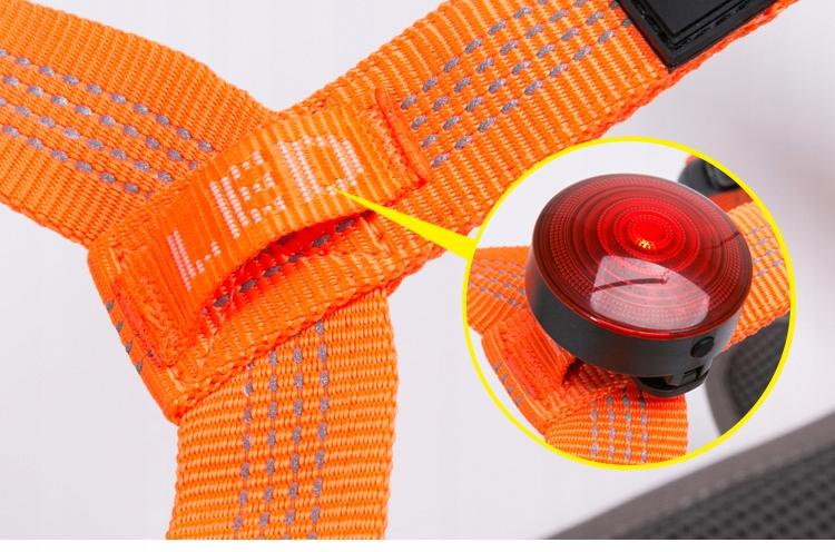 - Opremljen s posebnim žepom za LED lučko, zaradi katere bo vaš pes jasno viden po temi.