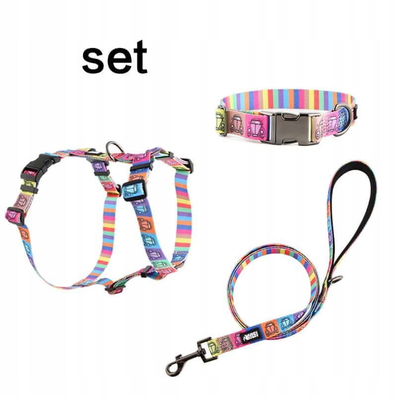 Vsi deli kompleta – oprsnica, ovratnica in povodec – imajo enako obliko. Tako bo vaš pes videti eleganten in moden.
