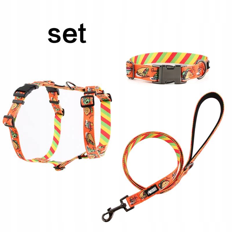 Vsi deli kompleta – oprsnica, ovratnica in povodec – imajo enako obliko. Tako bo vaš pes videti eleganten in moden.