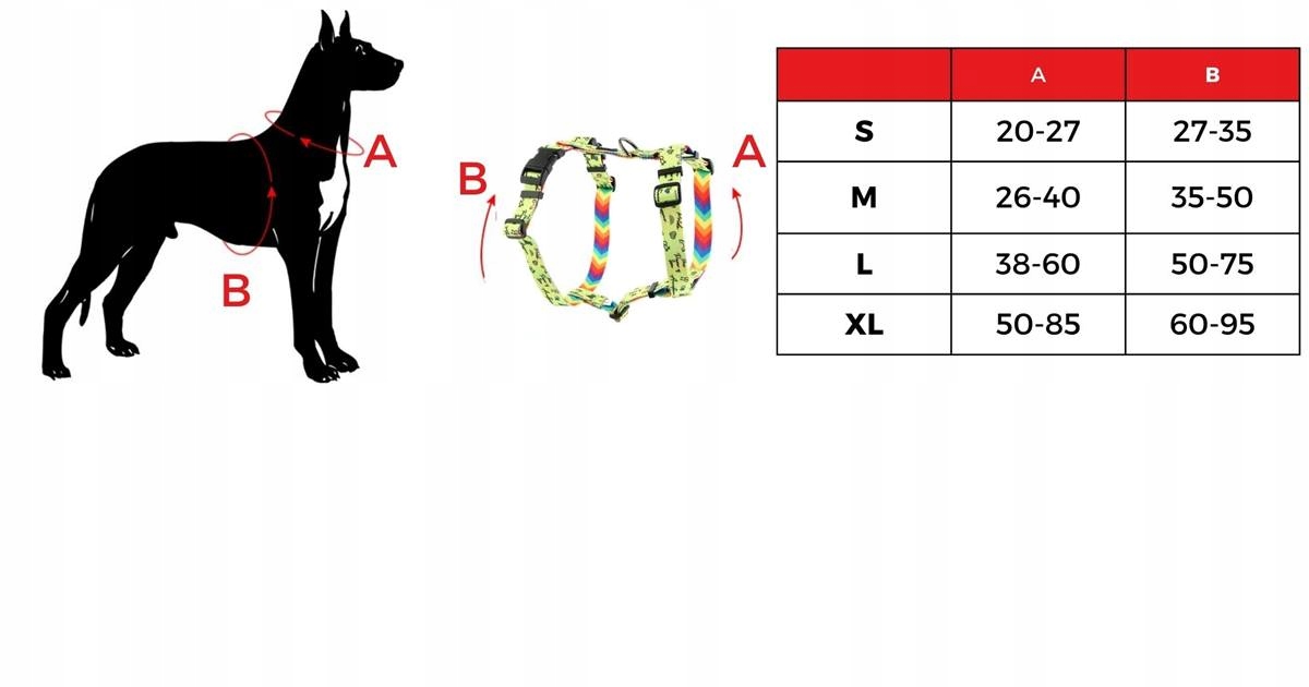 • Primerne so za pse različnih velikosti. Nastavljive so na petih mestih. Razpoložljivi vzorci in velikosti pasjega oprsnika HUGGY DOGGY Lucky
