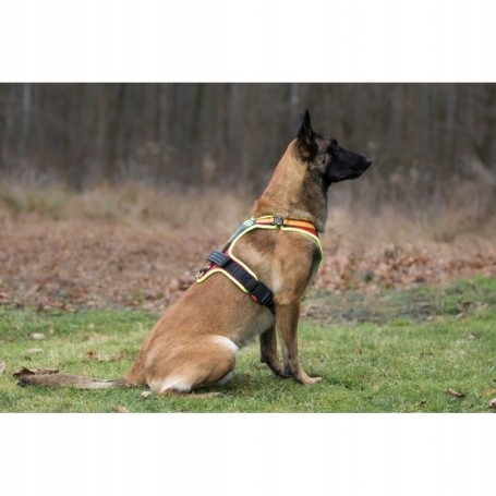 Profesionalna pasja oprsnica z ročajem . Popolnoma se prilega psu, ga ščiti in stabilizira. Zasnoval jo je svetovni prvak v šolanju psov. Udobna nastavitev, ergonomski prsni pas. Najboljša oprsnica za šolanje psov. Popolnoma se prilagodi telesu psa.