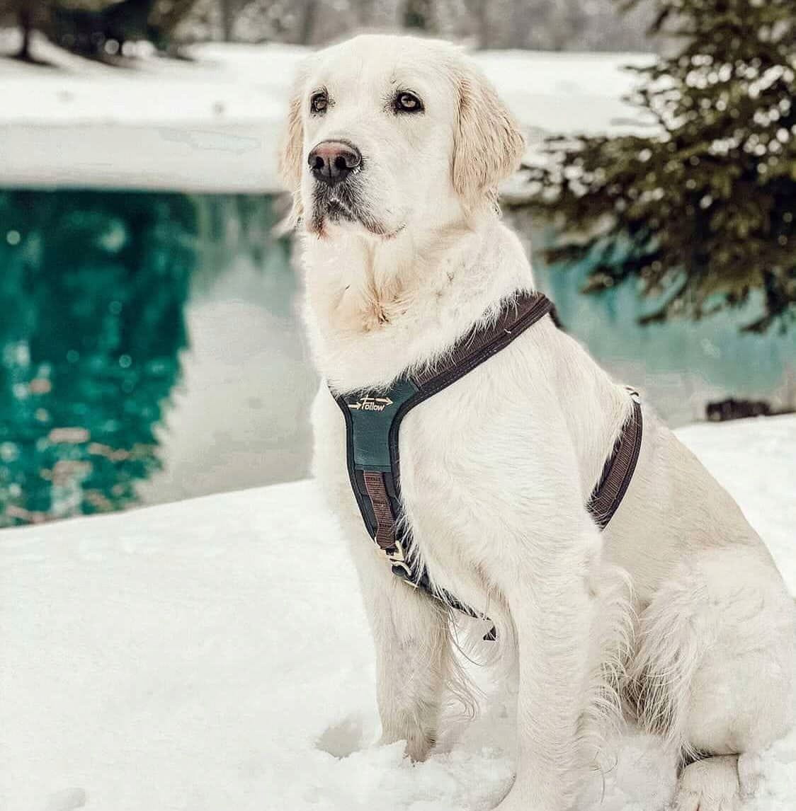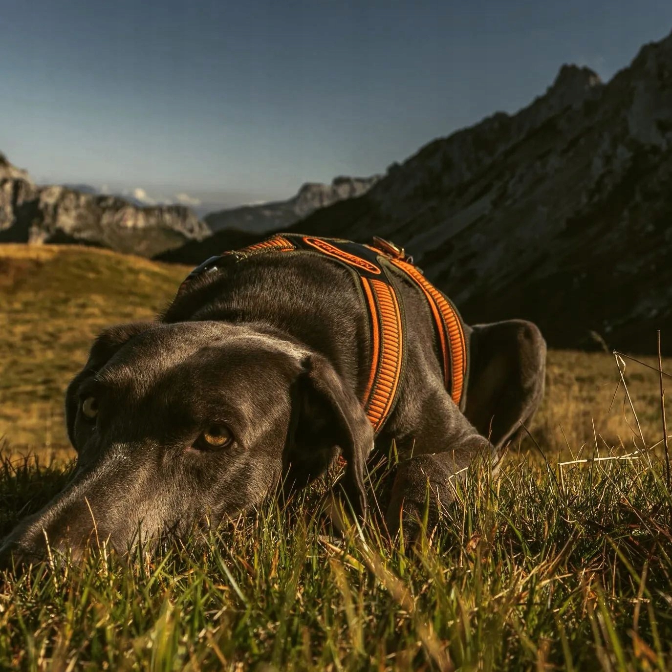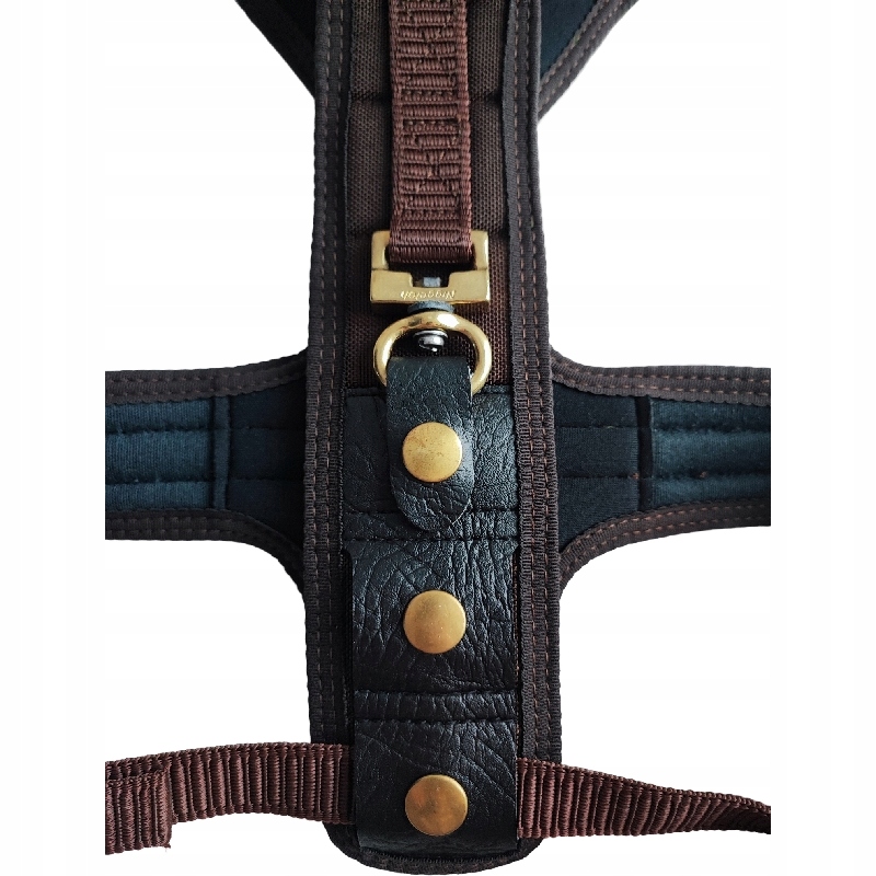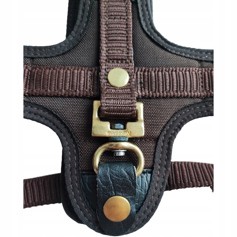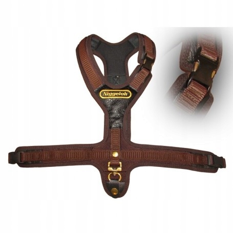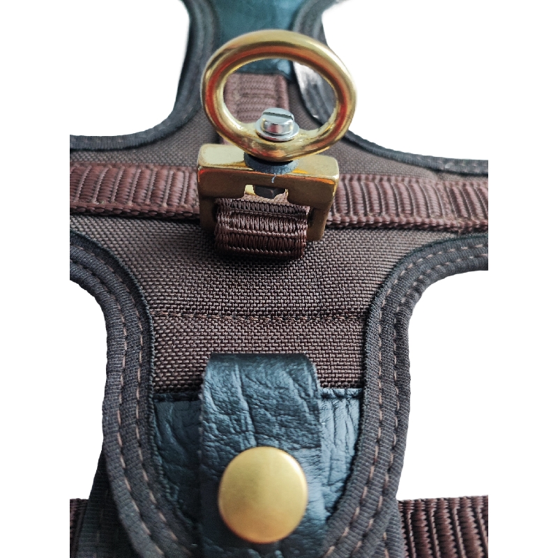 Lahek in udoben rjav oprsnik za lovske pse. Enostavna nastavitev širine omogoča popolno prileganje oprsnika telesu psa. Povodec je mogoče pritrditi spodaj in zgoraj, vrtljiv mehanizem pa se zavaruje, ko ni v uporabi. Podložen z neoprenom .