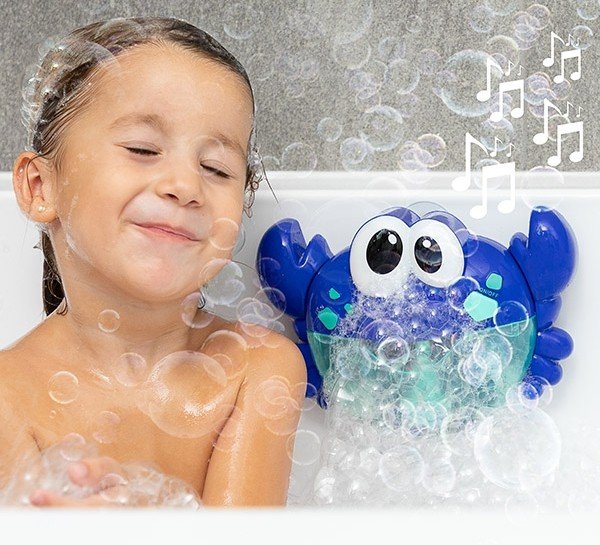 Zabavna električna avtomatska črpalka za milo v obliki rakca, idealna za zabavo v banji. Ta prikupen rakec lahko oddaja več kot 500 milnih mehurčkov na minuto.  Je tudi zelo enostavna za uporabo. Preprosto dajte tekočino iz mehurčkov v njegova usta in pritisnite gumb za vklop, da se takoj pokaže veliko mehurčkov. Uporabljate ga lahko z milom, izdelanim za črpalko (ni priloženo) ali z lastno domačo različico, po navodilih, ki so priložena.