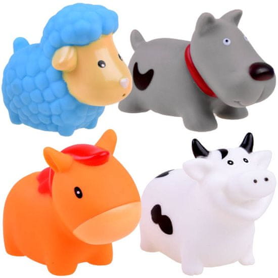 Set štirih gumijastih kmečkih živali za igro v vodi odličen za večerno kopanje, igro v otroškem bazenu ali samo za samostojno igro. Igrače so izdelane iz gume, ki je mehka na dotik, v privlačnih barvah. Velikost živaliós je idealna za majhne otroške roke. Zdaj je lahko vsaka kopel z zgodbo, pravljico.