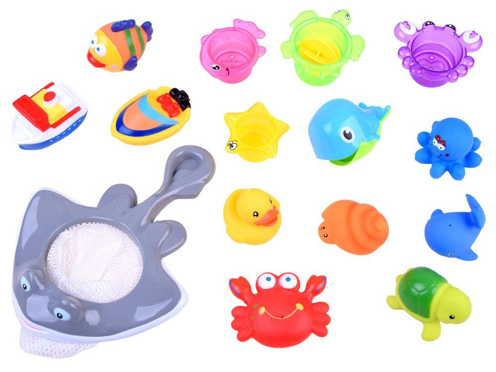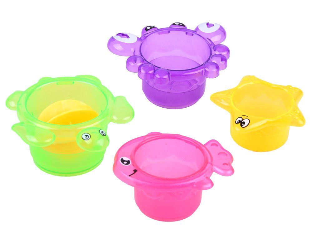 Barvni vodni set morske živali, čolniód, skodelice bodo poskrbeli, da bo kopanje našega malčka med igro v vodi prijetnejše. Komplet je namenjen malčkom, ki se radi brizgajo v kadi. Igrače spodbujajo razvoj otrokovih ročnih spretnosti. Otroku omogočajo, da opazuje obnašanje predmetov v vodi, kar spodbuja njegovo domišljijo. Igrače plavajo, in ko jih napolnimo z vodo, „brizgajo” z vodo – otroku nudijo ogromno zabave.
