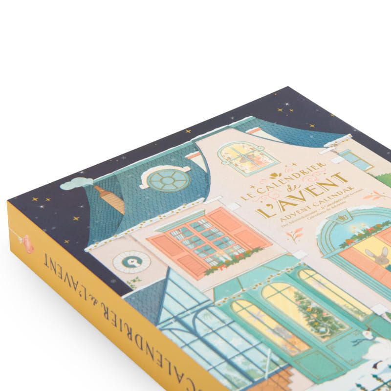 Kalenterin kannessa on talo, jota koristavat jouluvalot, jotka valaisevat pimeän joulukuun yön. Lumipilkkuja peittää kaupunkia, ja mökin lämmin sisustus ympäröi Pikku Tanssikoulun hahmot, jotka kiipeilevät olohuoneessa ja koristavat joulukuusta.