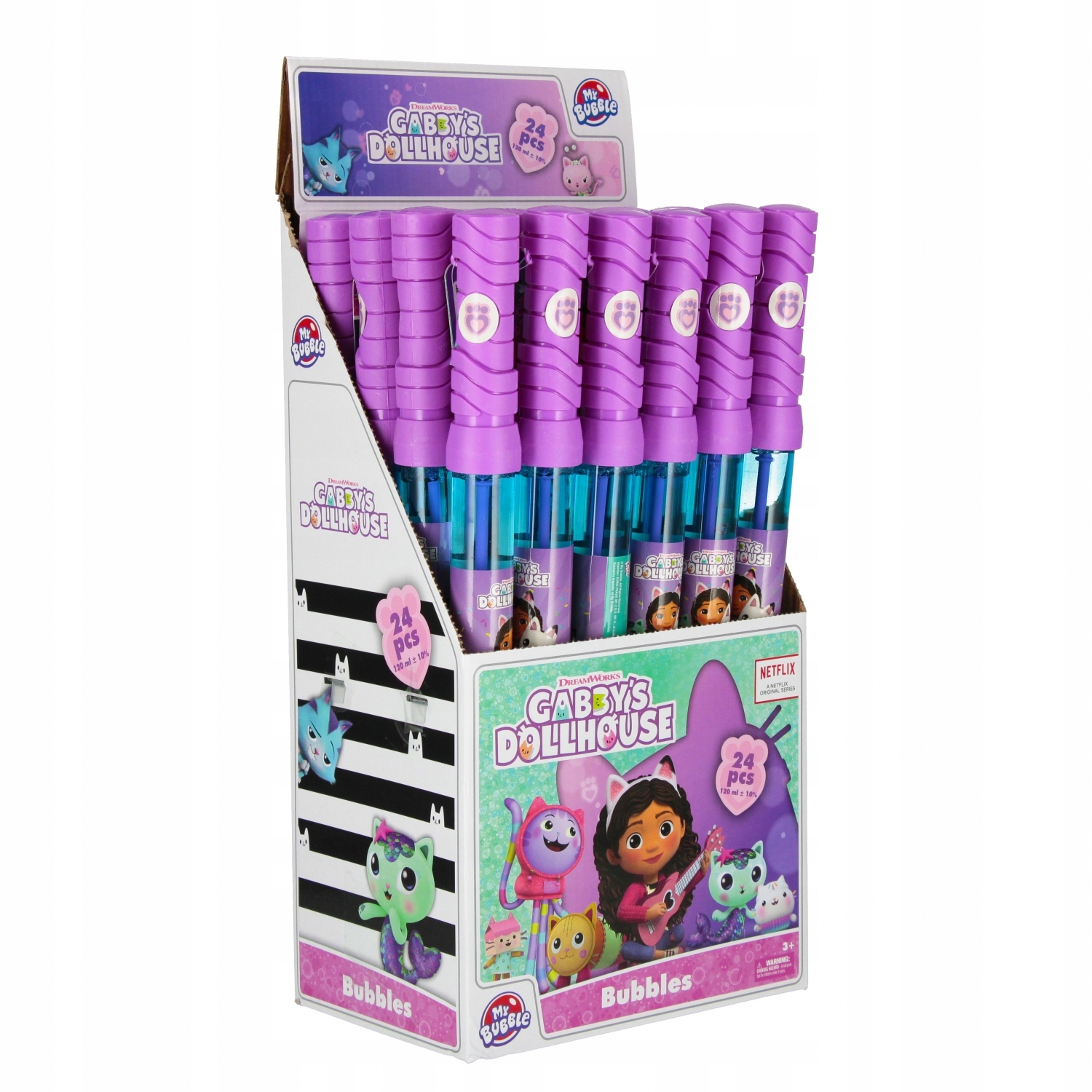 Prednosti izdelka: Milni mehurčki v obliki meča z licenco Gabbys Dollhouse MY BUBBLE bodo navdušili ne le otroka, ki se igra, temveč tudi vse okoli njega. Idealni so tudi za uporabo med različnimi dogodki na prostem, rojstnodnevnimi zabavami ali festivali. Meči so napolnjeni s posebno tekočino za mehurčke.