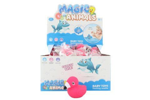 Svetleči flamingo za kopel. Vključuje baterije, ki jih ni mogoče zamenjati. Dimenzije približno 5,5 × 5 cm. Starost 3+