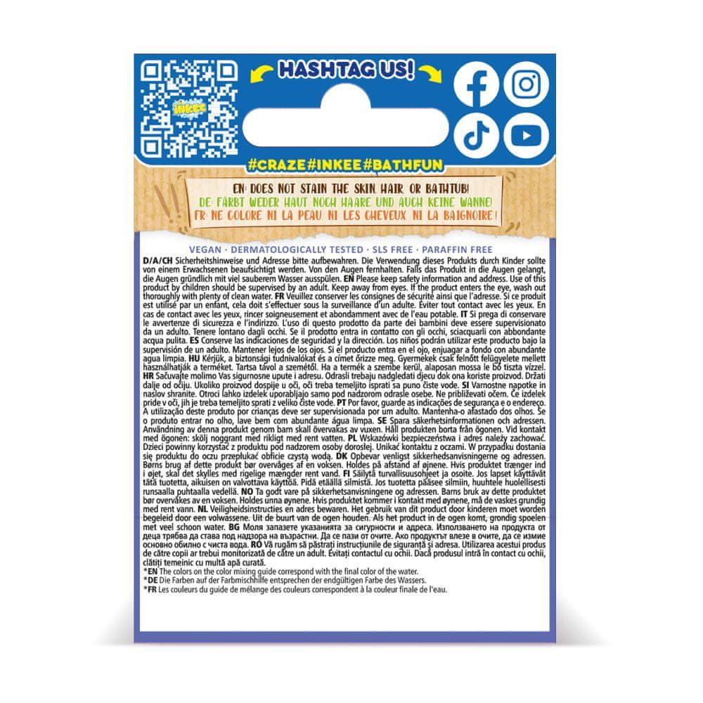 Paket vsebuje 100 g kosov kopeli s 4 barvnimi plastmi (modra, roza, vijolična in rumena). Z okusom sladkorne vate in karitejevega masla. Opazujte, kako koščki nežno plavajo v vodi in se počasi raztapljajo, da ustvarijo čarobno eksplozijo barv z neustavljivim vonjem sladkorne vate.