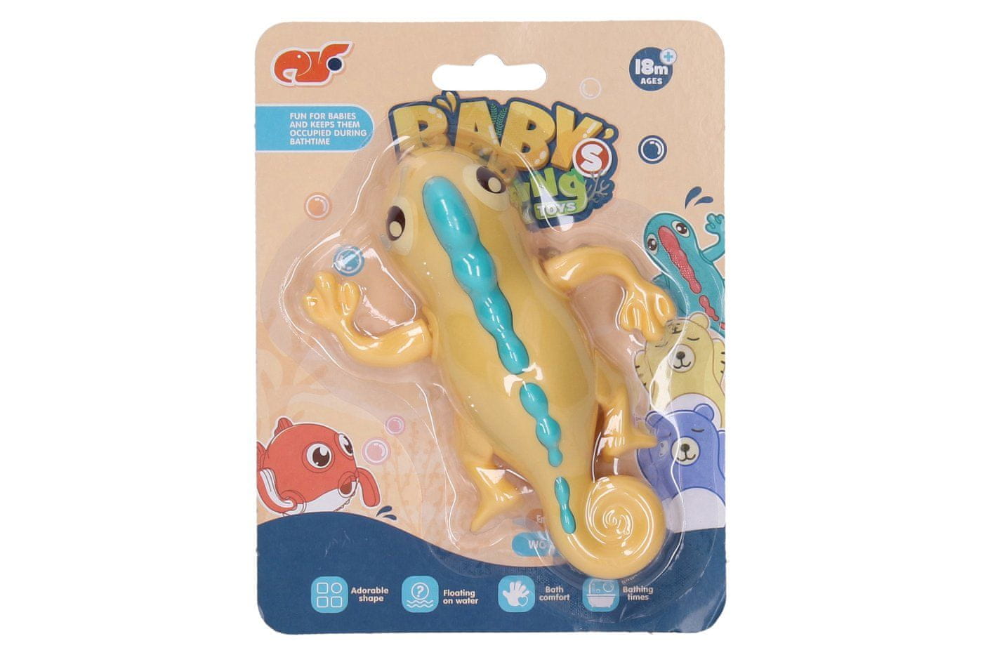 Izvlečna kuščarica v kopeli. Dimenzije 14×10×5 cm. 3 različice – modra, rdeča, rumena.
