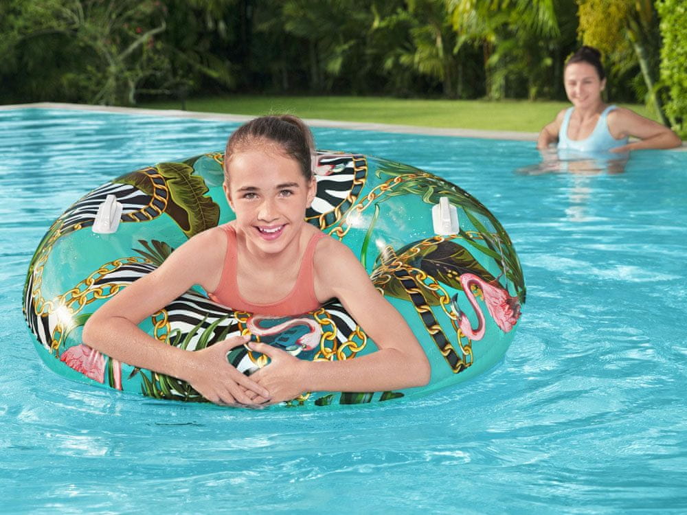 Parvito veliko napihljivo kolo Floral Fantasy™ znamke Bestway je predlog za poletne norčije za otroke od 12. leta dalje in odrasle. Kolo s premerom 114 cm ima dva trpežna ročaja za ljudi, ki se v vodi ne počutijo samozavestno. Močan PVC material zagotavlja vzdržljivost in ohranja pravo obliko. Kolo je opremljeno z varnostnim ventilom, po izčrpavanju zraka ne zavzame veliko prostora. Fantastična praznična grafika pritegne pozornost.
