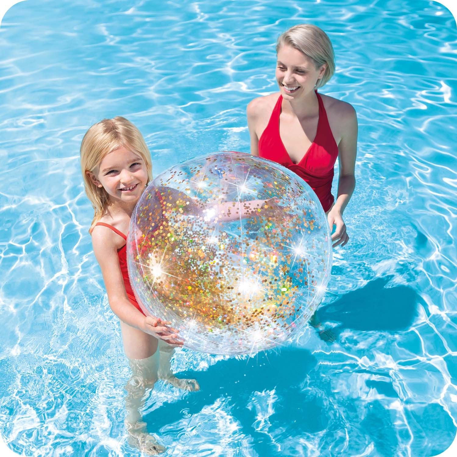 Dodajte nekaj iskric svojim počitnicam! Bleščeči delci se med igranjem na soncu čudovito lesketajo, žoga pa bo popestrila tudi oblačne dni.
