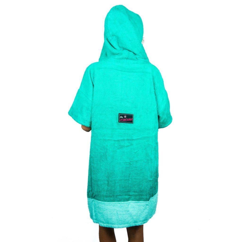 Pončo je izjemno mehak in puhast. Z dvojno, izjemno toplo kapuco z visokim ovratnikom in vrvico. Velik sprednji žep ponuja prostor za pripomočke, kot so šampon, ščetka ali pa vaše hladne roke.