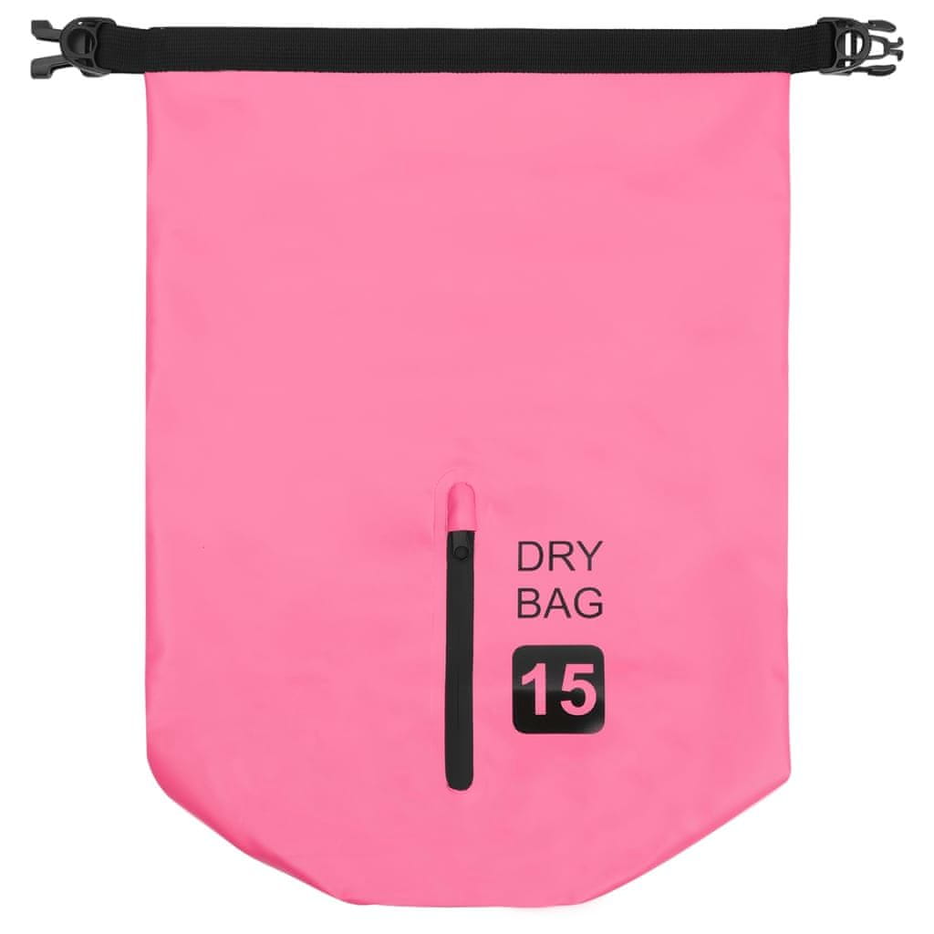 Vidaxl Torba Dry Bag z zadrgo roza 15 L PVC