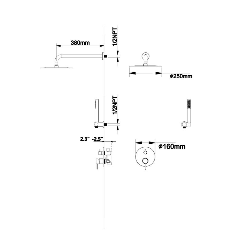 VERANNI S-1098 VGRADNI SET ZA TUŠ, KROMIRAN