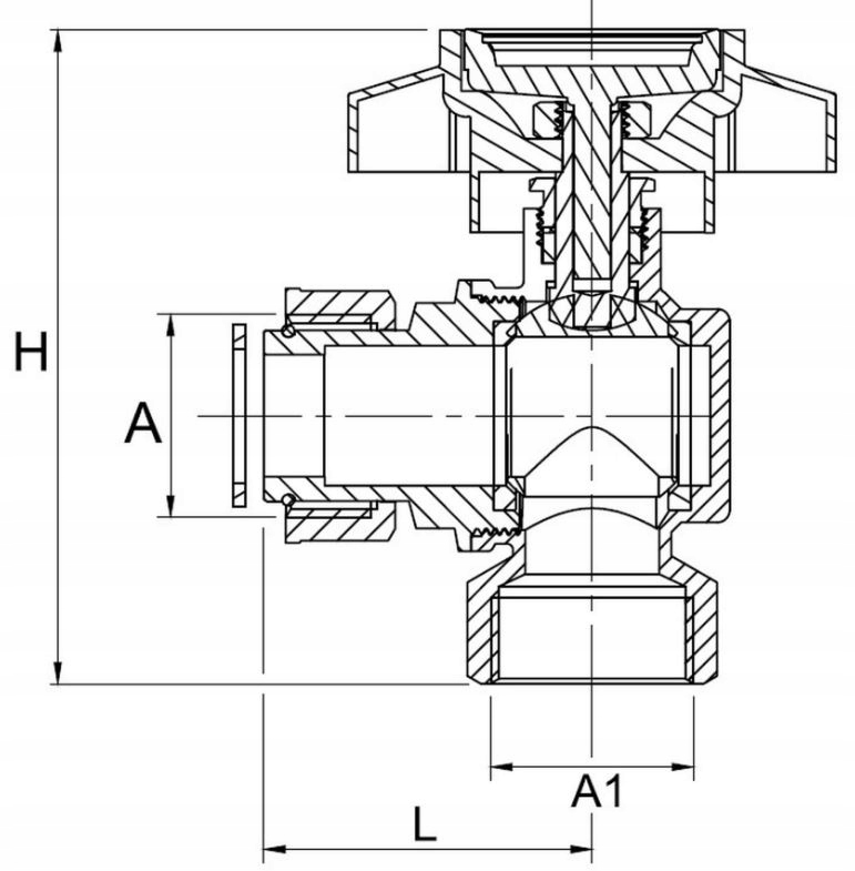 KOTNI VENTIL 1" Z ŽENSKIM NAVOJEM S POLOVIČNIM NAVOJEM IN TERMOMETROM, ŠPANSKO MODRA Celoten opis