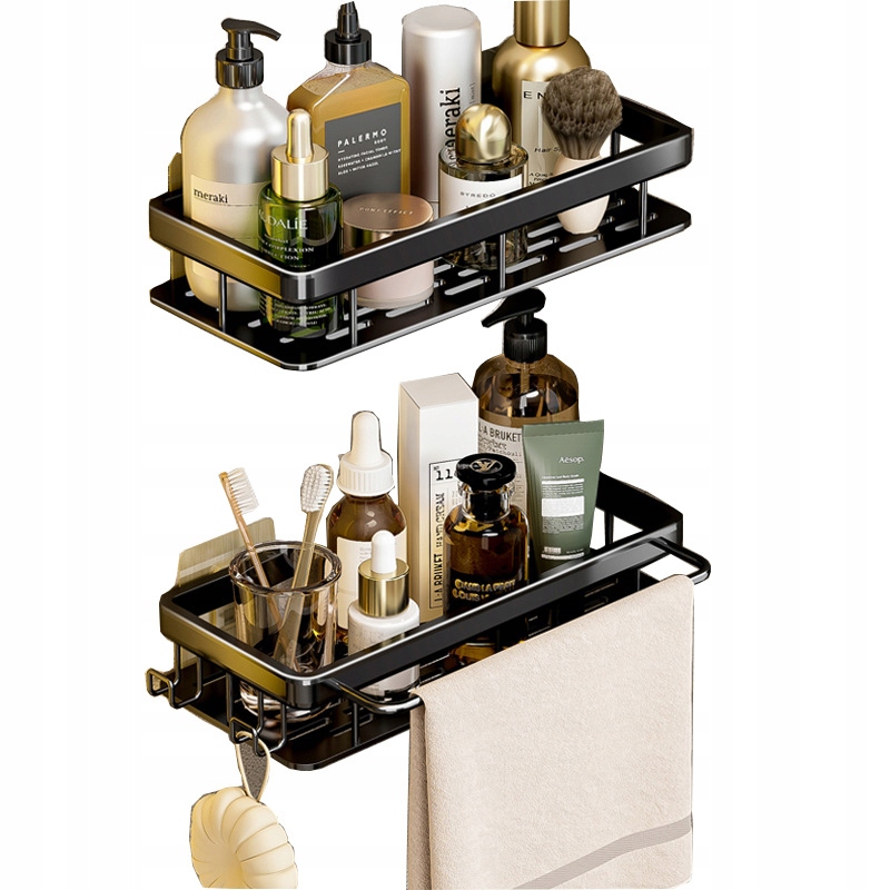 Lepe in velike kovinske police iz trpežnega aluminija, ki nikoli ne rjavi. Enostavna namestitev z zelo močnim vodoodpornim dvostranskim lepilnim trakom.