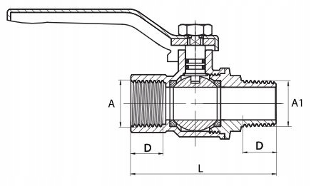 PLINSKI KROGELNI VENTIL Z ROČAJEM 1 PALC Z ZUNANJIM NAVOJEM Celoten opis