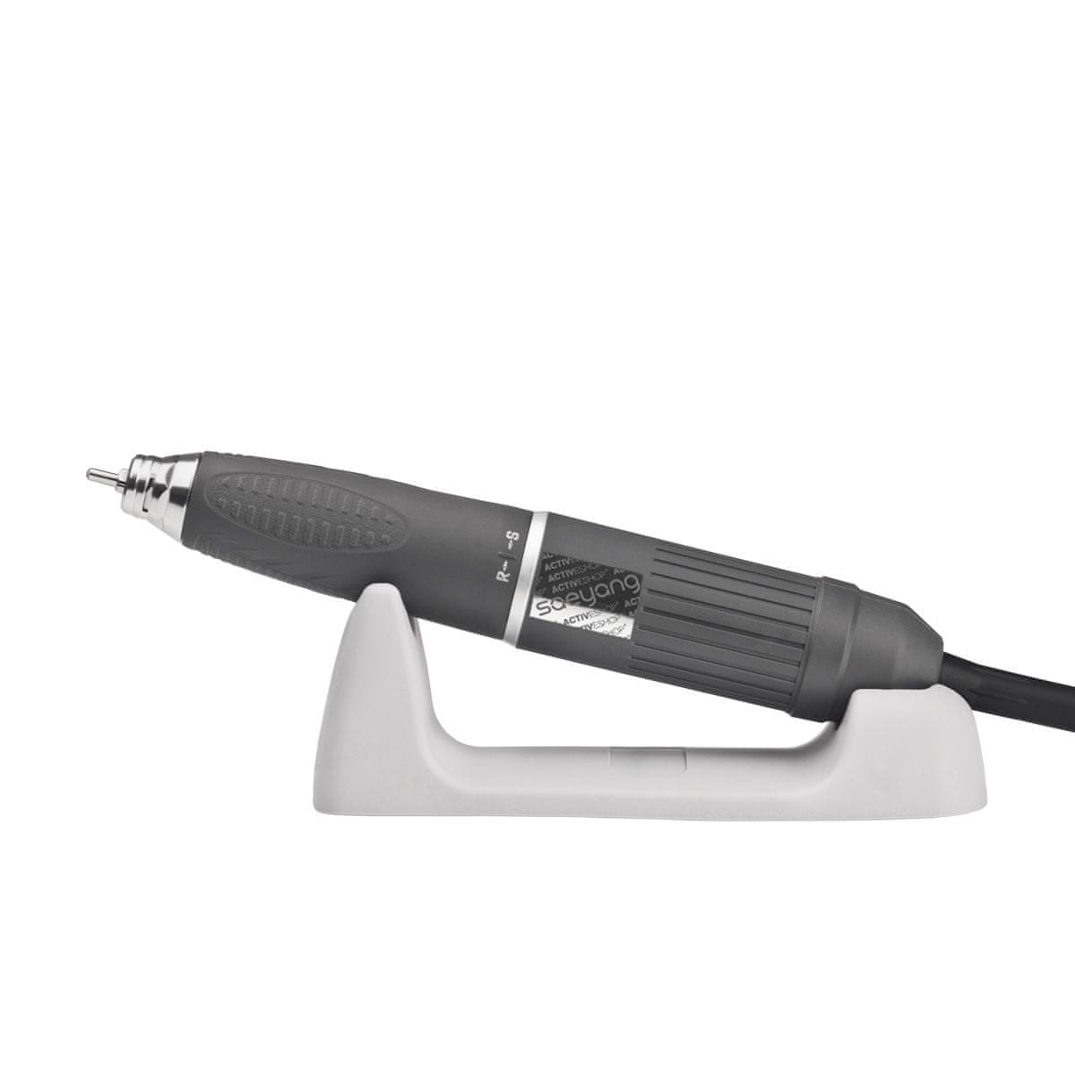 Ima točno to, kar pričakujete od vrhunskega rezkalnega stroja Izbirate lahko med nastavljivim gumbom za upravljanje ali nožnim pedalom z vgrajenim regulatorjem hitrosti (priložen), kar močno olajša delo Funkcija AUTO-CRUISE vam omogoča, da po potrebi nastavite nožni pedal na konstantno hitrost Brezkrtačna glava omogoča tudi hitrosti do 1000 vrt/min Drugi priključek vam omogoča delo z drugo glavo in hitro menjavo orodij brez menjave kablov Funkcija samodiagnoze spremlja pravilno delovanje z iskanjem okvarjenega območja, ki se prikaže z ustrezno kodo na digitalnem zaslonu Priloženo stojalo omogoča enostaven odmor in pritrditev glave med uporabo