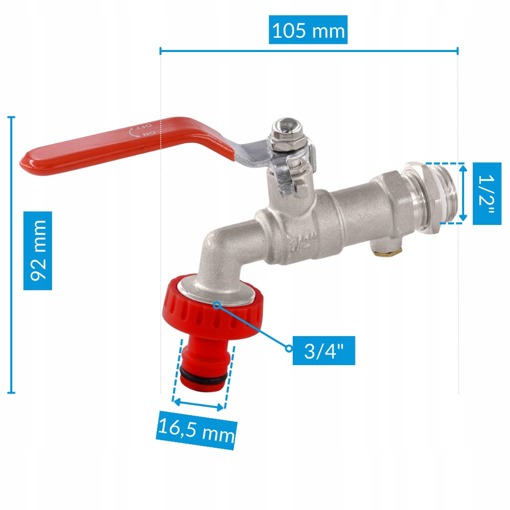 - Opremljeno z: hitrim priključkom, nepovratnim ventilom, zimskim odtokom, samovarovalno matico