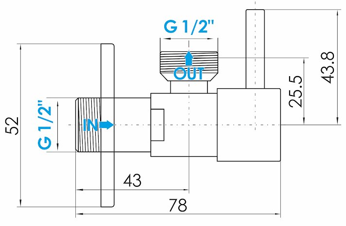 – Velikost: 1/2" (stran stene) x 1/2" (stran cevi) ;