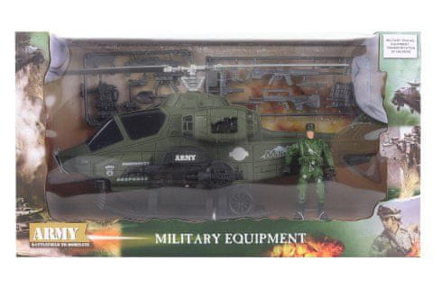 Vojaški komplet vključuje helikopter velikosti 35 × 15 cm, figuro vojaka ter druge dodatke v obliki orožja in opreme. Celoten opis
