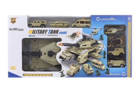 Vojaški komplet velikega tanka s 6 avtomobili in 1 helikopterjem. Celoten opis