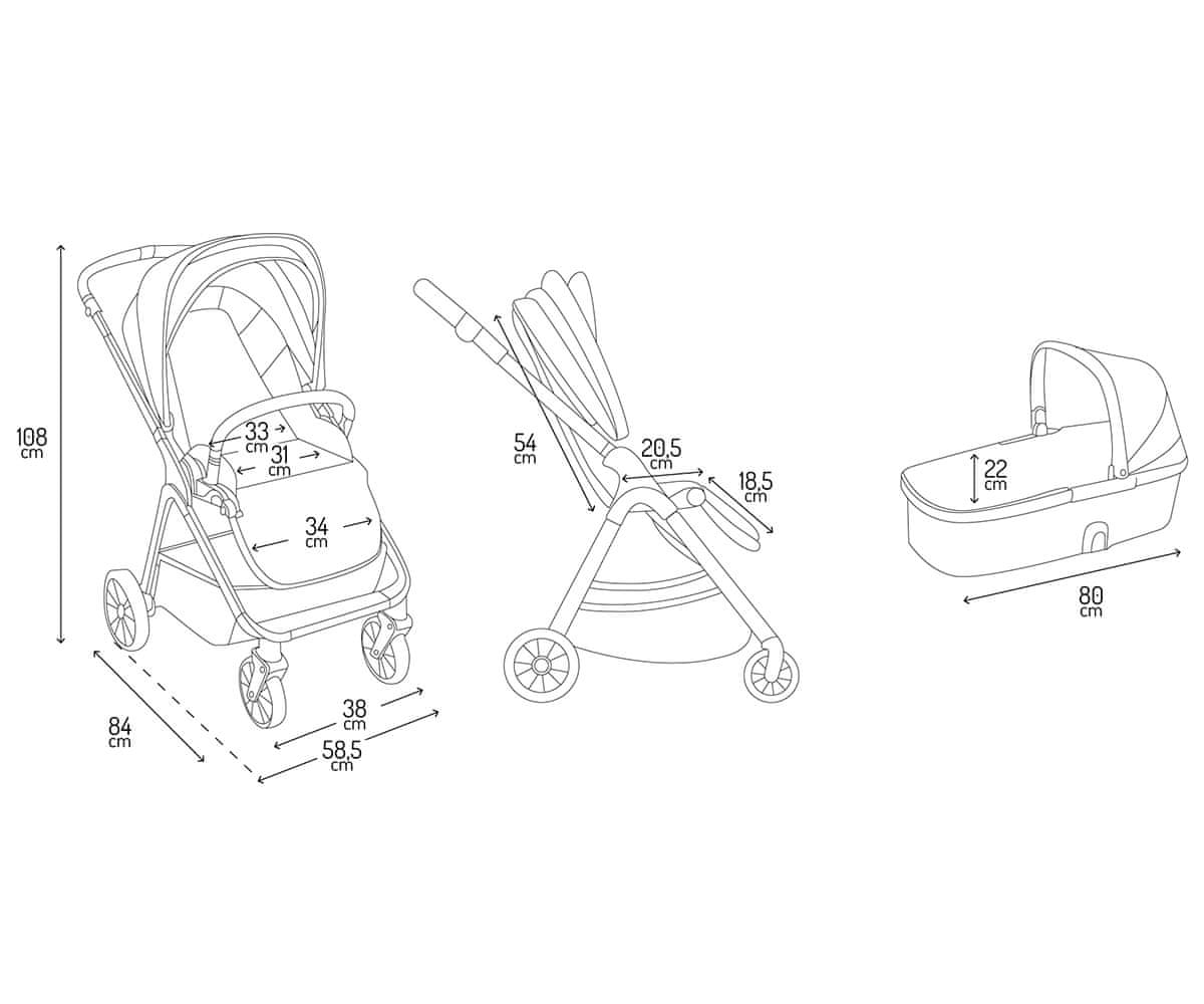 | Dimenzije (voziček) | 84 × 59 × 108,7 cm |