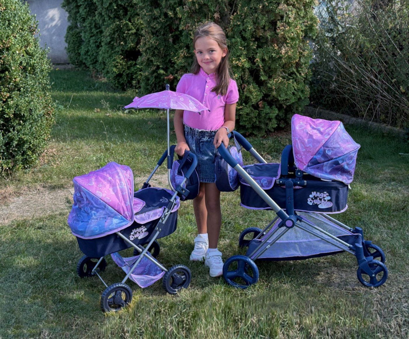 DeCuevas Magic Bubble 2024 zložljivi voziček za lutke 3 v 1 bo očaral vsakega malega ljubitelja lutk. Navdušil jih bo s svojo čudovito prefinjeno obliko, ki jo navdihujejo sodobni vozički priznanih blagovnih znamk. Zaradi barvitega mavričnega motiva z mehurčki in okrogle torbice je eleganten dodatek vsaki otroški sobi ali sprehajališču.