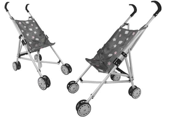 Voziček je opremljen s štirimi kolesi, ki omogočajo enostavno vožnjo tudi na neravnih površinah. Voziček ima sivo barvo in dvobarvne zvezde. Dodatna prednost je, da je zložljiva, zlahka se prilega v avto in jo boste lahko skupaj odpeljali na družinski izlet.