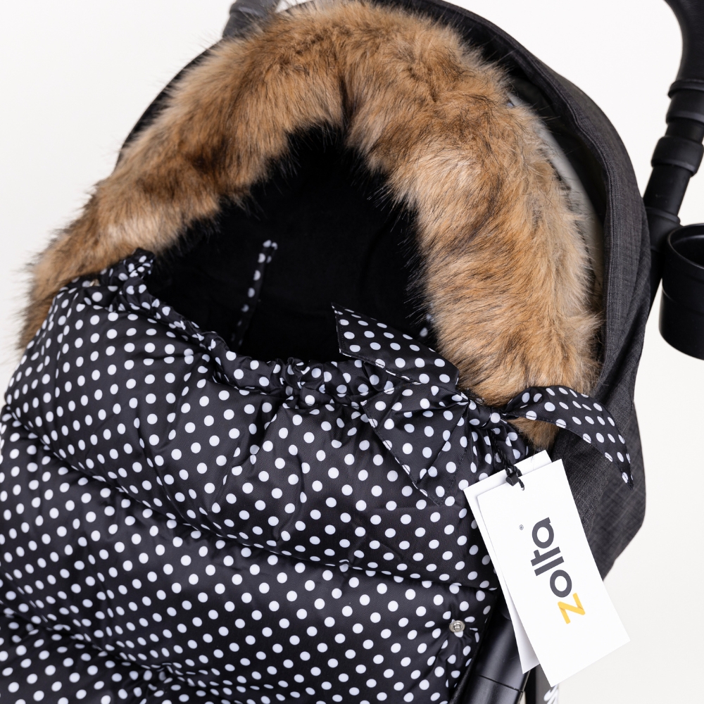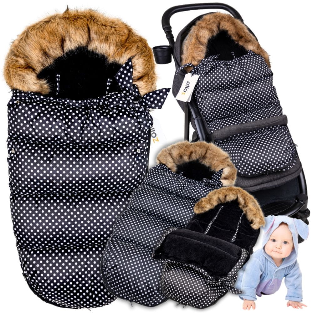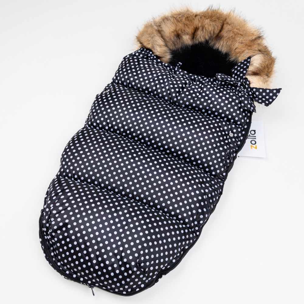 ❤️ TOPLA SPALNA VREČA S KRZNOM ZA VOZIČEK, SEDEŽ, PRENOSNO KOŠALICO, SANI ZA ZIMI ČRNO S PIKICAMI 2,5 TOG