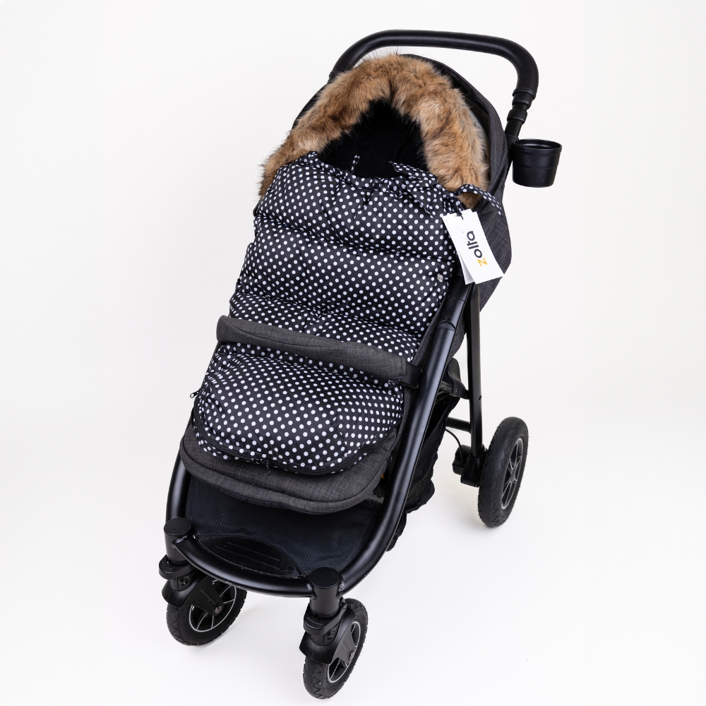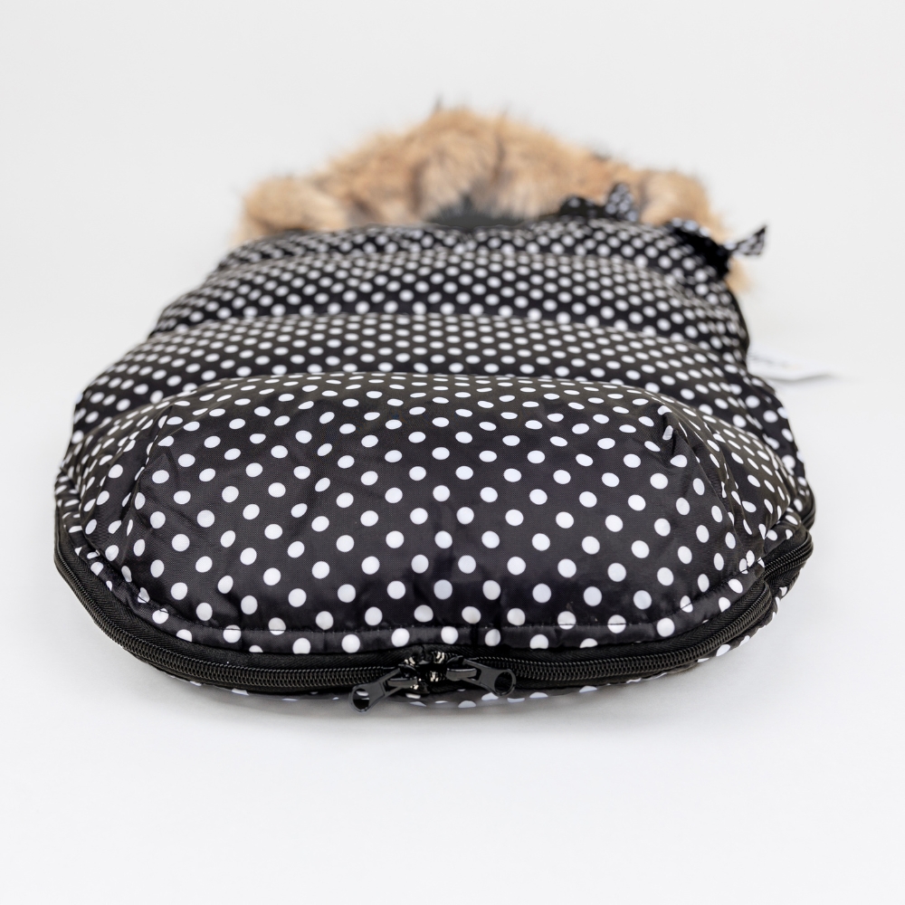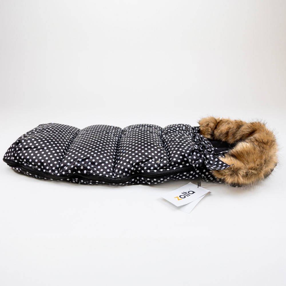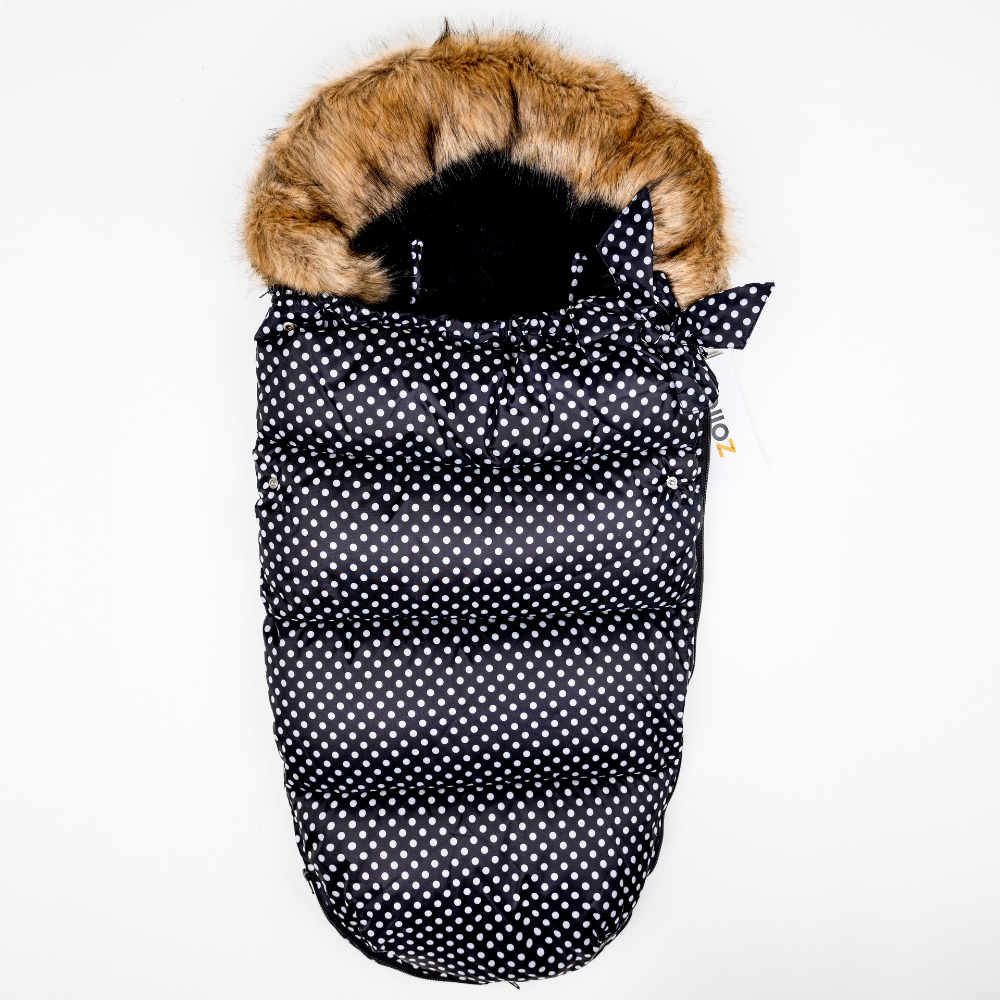 ❤️ TOPLA SPALNA VREČA S KRZNOM ZA VOZIČEK, SEDEŽ, PRENOSNO KOŠALICO, SANI ZA ZIMI ČRNO S PIKICAMI 2,5 TOG