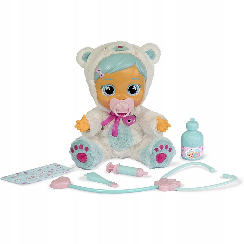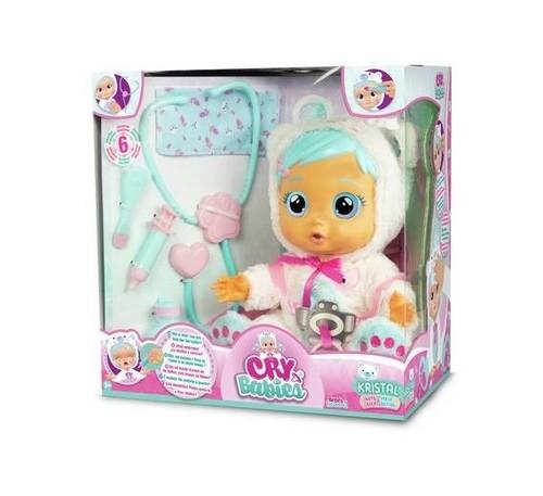Kristal je bolna! Ali lahko poskrbite zanjo? Če začne kašljati, ji dajte zdravilo, ki ga bo ustavilo. Če dobi vročino, ji morate čelo pokriti z mokro krpo, da jo ohladite. Ko se ji na obrazu pojavijo rdeče lise, ji dajte injekcijo, da izginejo! Kot vsi jokajoči dojenčki tudi Kristal joka prave solze. Ko ji odstranite dudo, bo oddajala realistične otroške zvoke.