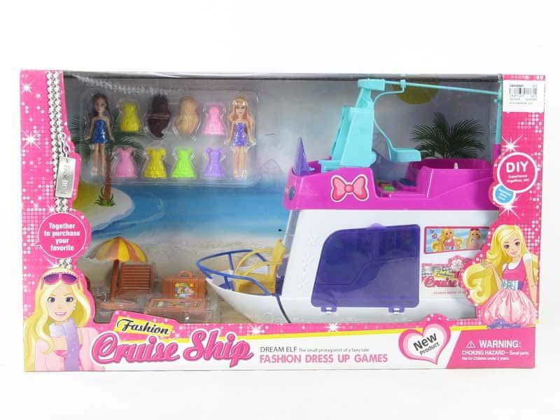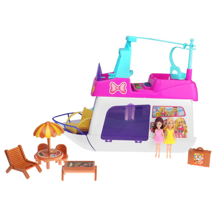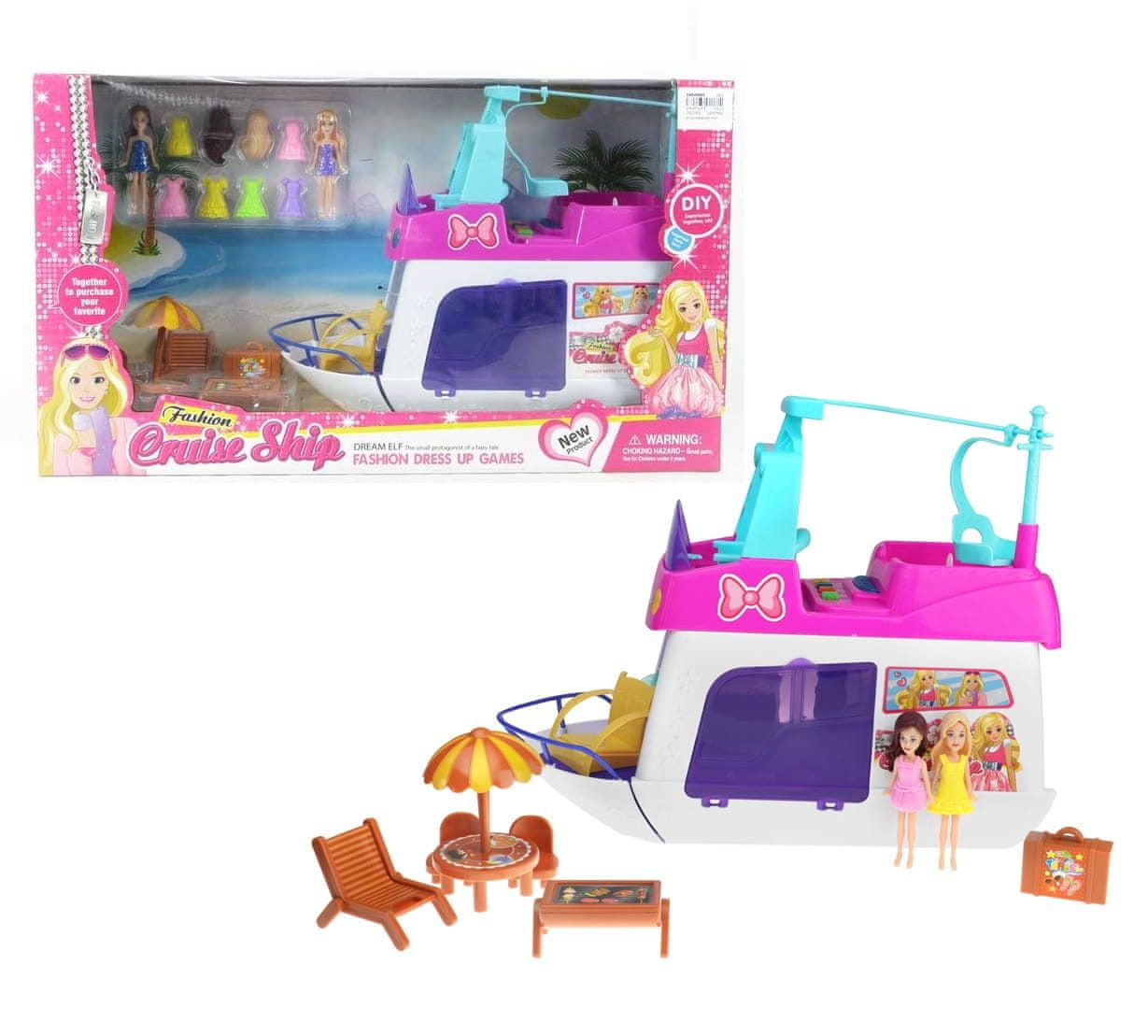 Punčka gre s svojo prijateljico na izlet! Ta komplet igrač vsebuje vse, kar potrebujete, da pustite svoji domišljiji prosto pot! Našli boste dve punčki, ki se radi preoblačita, različna oblačila in pričeske ter vse, kar potrebujete za zabavo na plaži na neverjetnem potovanju! Komplet vključuje super jahto, ki jo je mogoče odpreti za zabavo in se celo spustiti po toboganu! Ta ladja je popolna za potovanja blizu in daleč!