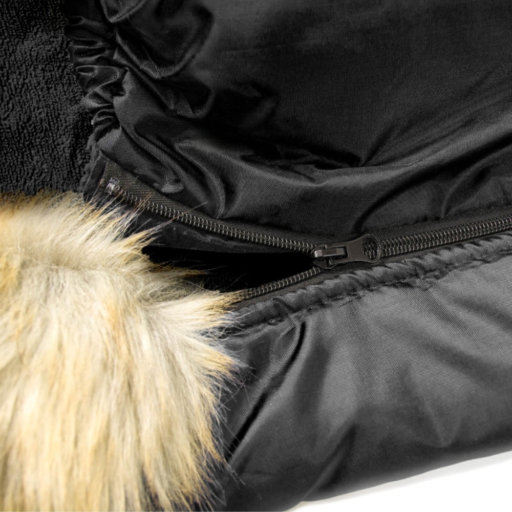 Velika kapuca z dodatnim žepom zadaj ščiti vrečko za noge pred drsenjem v vozičku. ❤️ ZA VSE VREME!