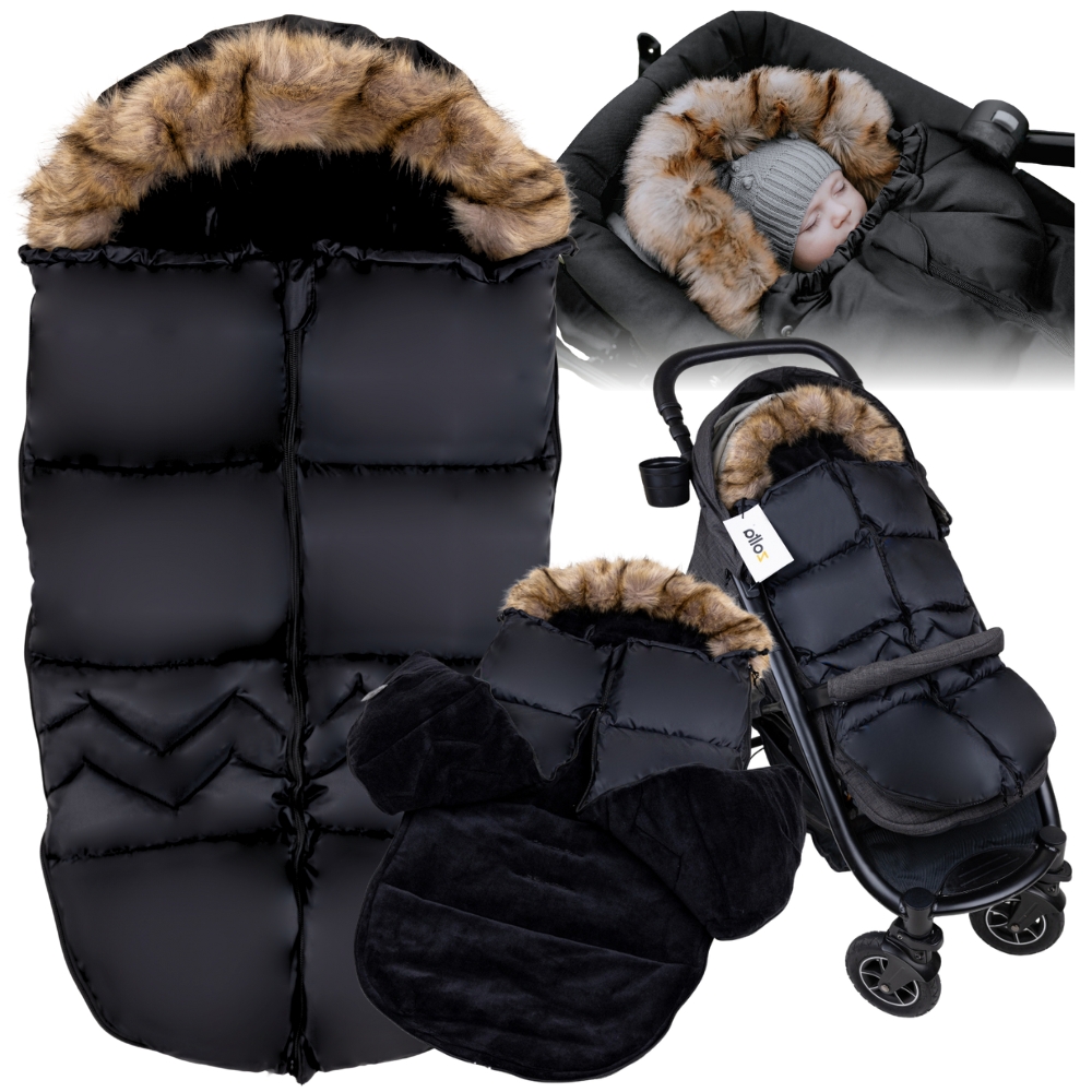❤️ TOPLA SPALNA VREČA S KRZNOM ZA VOZIČEK, GONDOLO, VOZIČEK, SANI ZA ZIMI PREŠITA DOJENČKOVA ČRNE BARVE