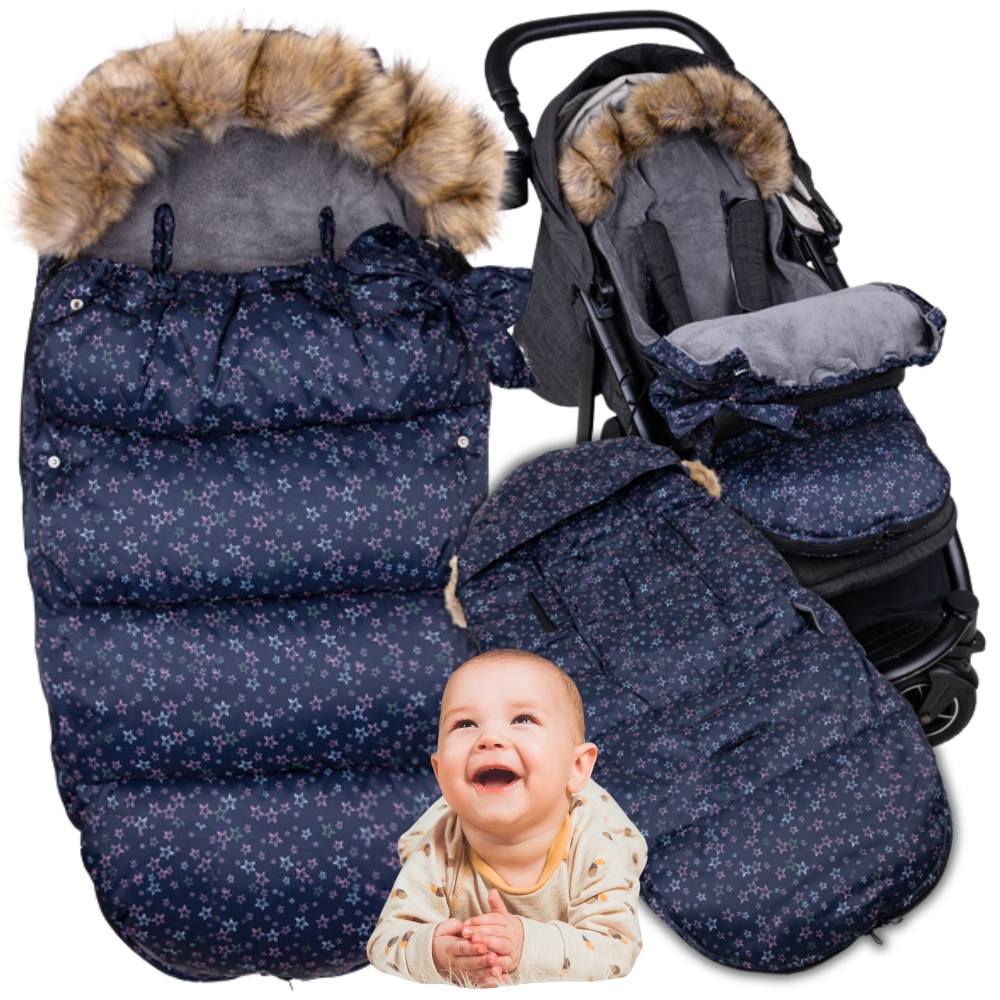 ❤️ SPALNA VREČA ZA OTROŠKI VOZIČEK, SANI, TEMNO MODRE ZVEZDICE – 2,5 TOG ❤️