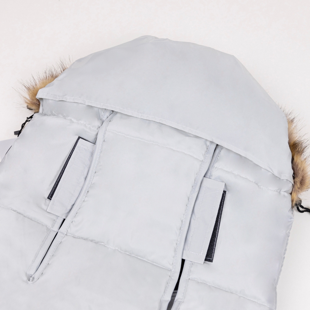 Velika kapuca z dodatnim žepom zadaj ščiti vrečko za noge pred drsenjem v vozičku. ❤️ ZA VSE VREME!