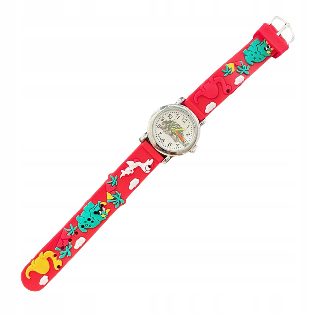 Otroška ura na elastiko UDOBNA od 3 let ZA UČENJE RDEČA Dinozavri Celoten opis