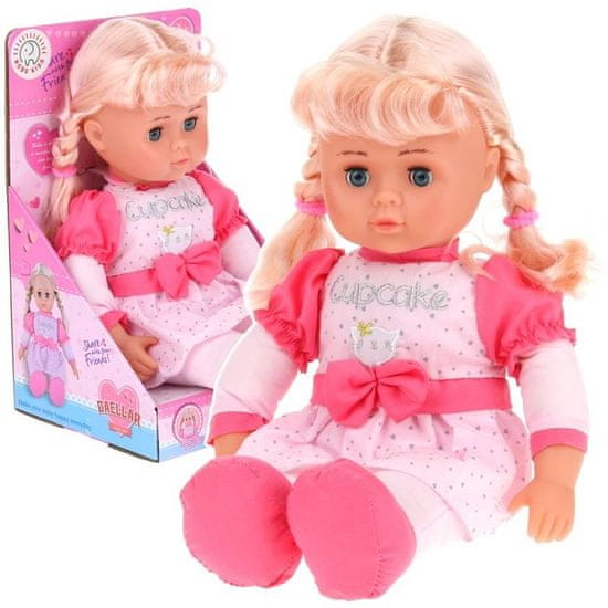 Vsaka punčka sanja o svoji punčki in tale punčka iz cunj bo popolno darilo. Punčka bo razveselila vsakega otroka, ki se rad igra s svojimi ljubkimi igračami. Lastnosti: – Lutka je izdelana iz mehkega materiala, prijetnega na dotik, njena notranjost pa je polnjena z vato. – Ima čudovite dolge lase spete v kitke in čudovito barvito obleko s pentljo. – Lutka ima gumijasta usta, njen obraz je lep in vesel, kar bo zagotovo všeč vsaki punčki. – Oči punčke so gibljive, tako da jo lahko zazibate v spanec. – Lutka ne sedi ali stoji sama. Predlagana minimalna starost (po podatkih proizvajalca na embalaži): 3 leta+ Dolžina punčke: 42 cm Dimenzije embalaže: 19,5 (š) x 17 (g) x 30 (v) cm Podatki proizvajalca: Ni primerno za otroke, mlajše od 36 mesecev. Vsebuje majhne dele, ki jih je mogoče zlahka pogoltniti ali vdihniti. Nevarnost zadušitve.