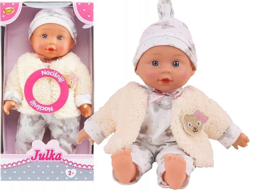 Punčka Julka je popolna spremljevalka za malega skrbnika. Posadite jo v voziček, peljite jo na sprehod, povabite jo na čaj. Crkljajte in se igrajte s svojim malčkom. Punčka in njena oblačila so izdelani iz visokokakovostnih materialov. Dobro izdelani detajli.