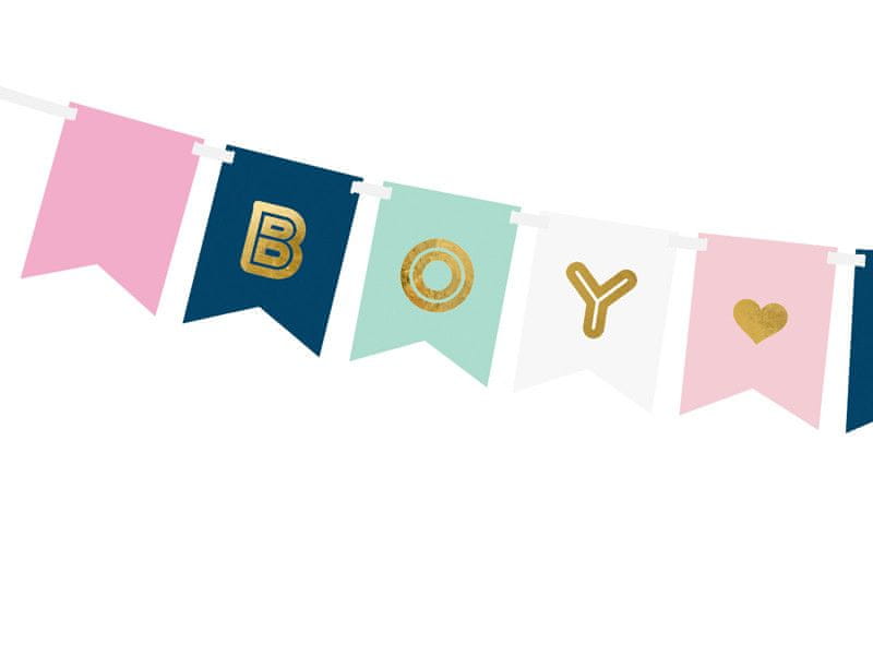 Transparent za fantka ali dekle, mešanica barv z zlatim napisom, samostojna montaža, komplet vsebuje črke in približno 2,5 m belega traku, mere po montaži: višina približno 15 cm, dolžina približno 175 cm.