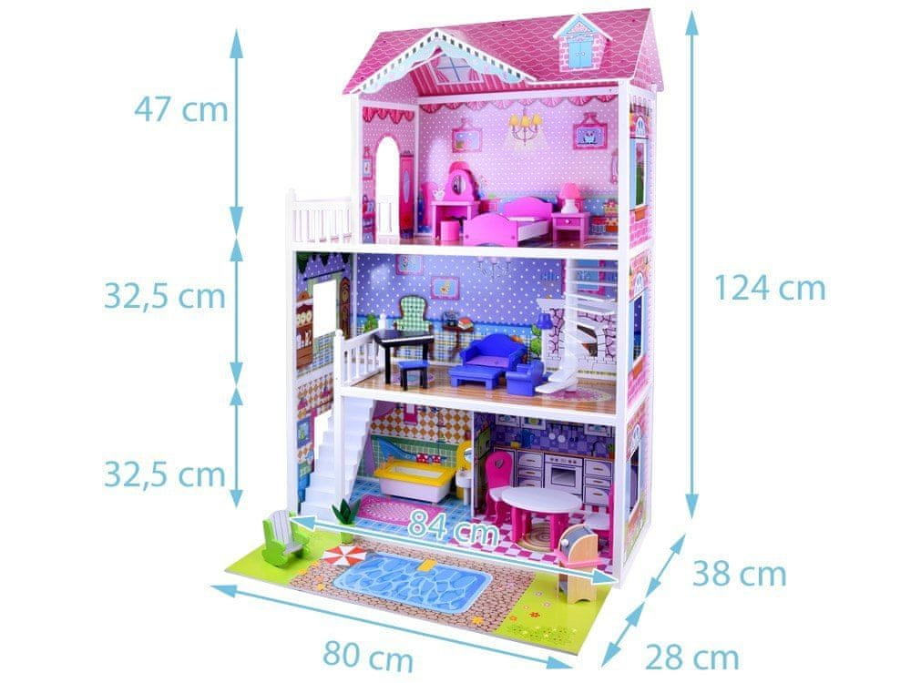 Ta očarljiva, barvita hišica za punčke so sanje vsake deklice. Vsaka punčka se bo v njej počutila čudovito.