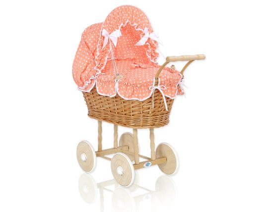 Visok pleten voziček za punčke s posteljnino in podlogo v barvi breskve – naravno Celoten opis