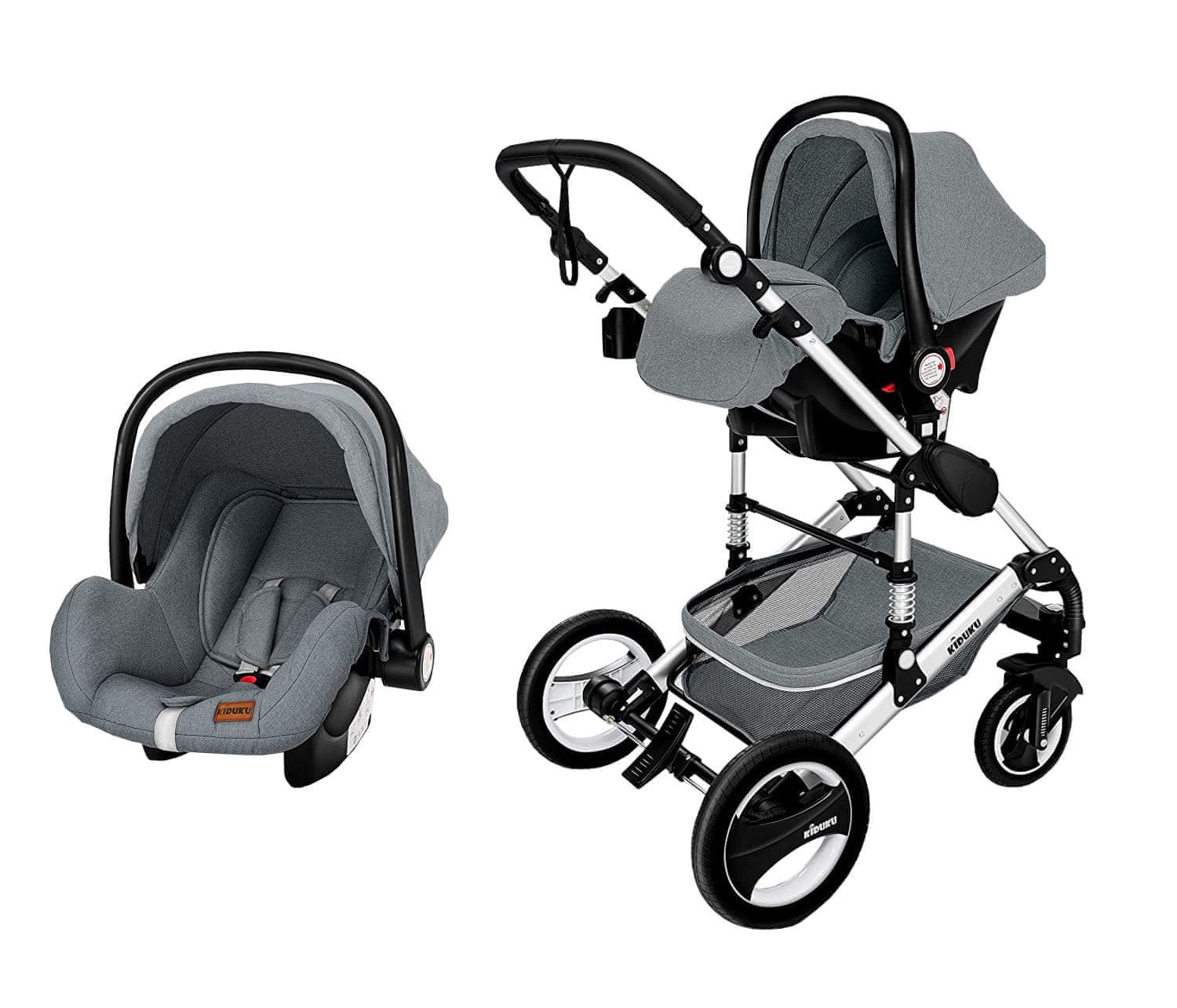 Kiduku Kombinirani voziček 3v1 Sivi