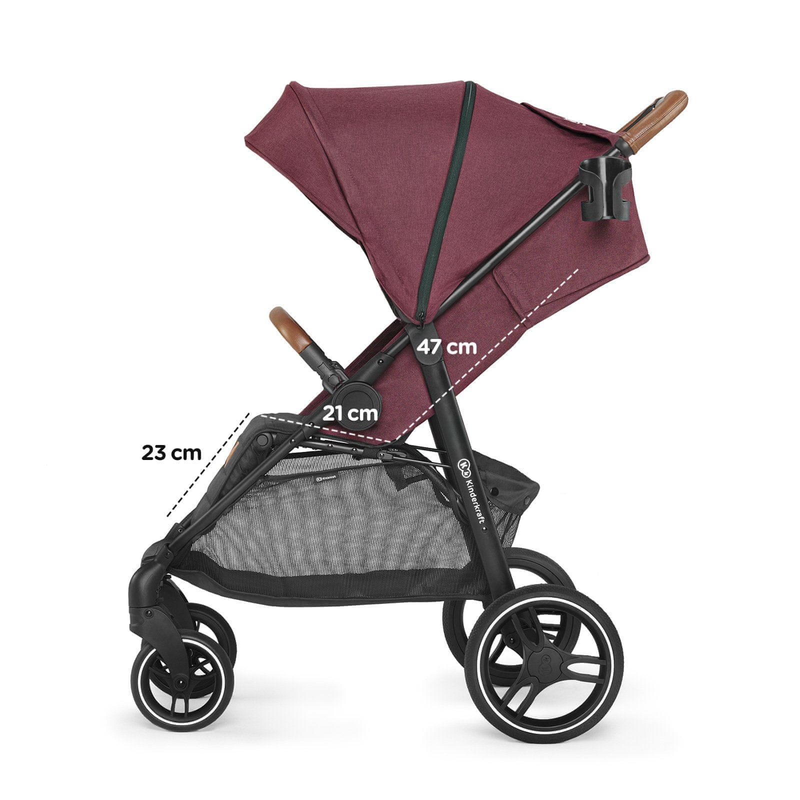 • Sprednja kolesa iz pene EVA imajo premer 16 cm z možnostjo zaklepanja